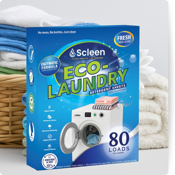 Scleen is an eco-friendly alternative to traditional laundry detergent. Our sheets are lightweight, mess-free, and dissolve completely in water — no plastic jugs, no spills, just clean.