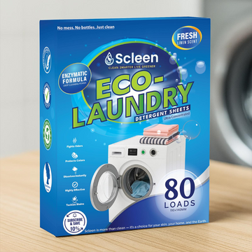 At Scleen, we’re redefining what clean means, for your home, your health, and the planet. Our laundry sheets are part of a bigger mission: less waste, fewer chemicals, and more care in every wash.